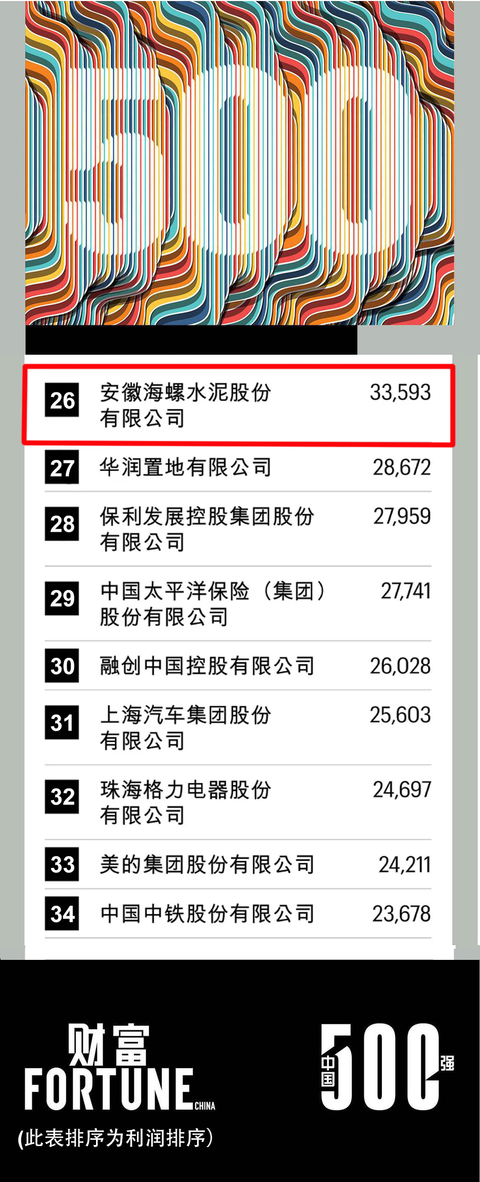 7月27日,财富中文网发布了最新的《财富》中国500强排行榜。海螺水泥以净利润335.9亿元入选2020年《财富》中国500强最赚钱的40家公司,排名第26位。